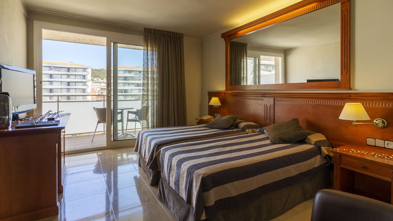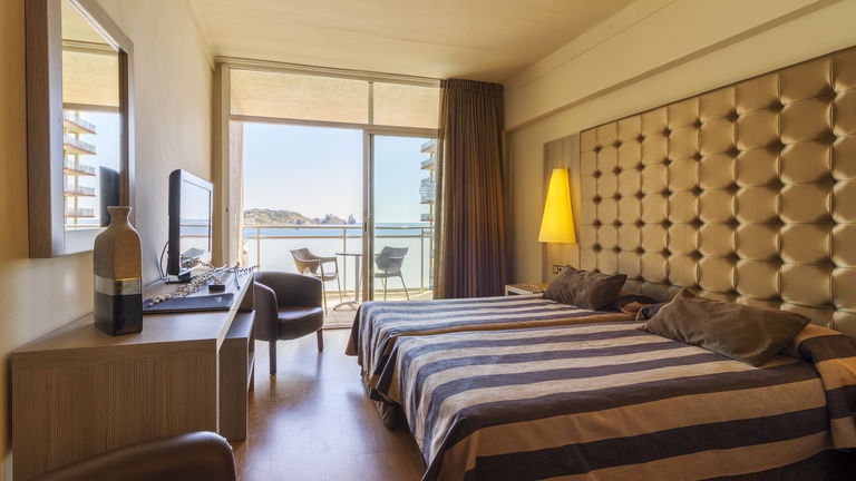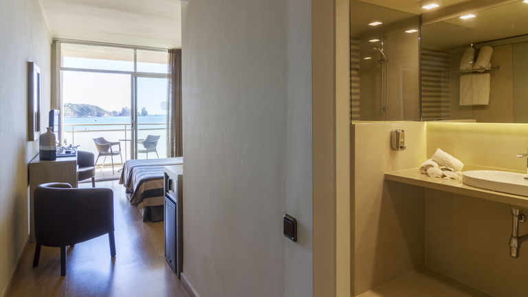 Aire acondicionado/calefacción. Camas de 90cmx190cm (cama de matrimonio bajo petición). TV 32'' con TDT y via satélite. Conexión wifi gratuita. Mini-nevera gratuita. Teléfono. Caja de seguridad (con suplemento). Baño completo con secador, espejo de aumento y set de amenities. Terraza exterior con vistas al mar.
