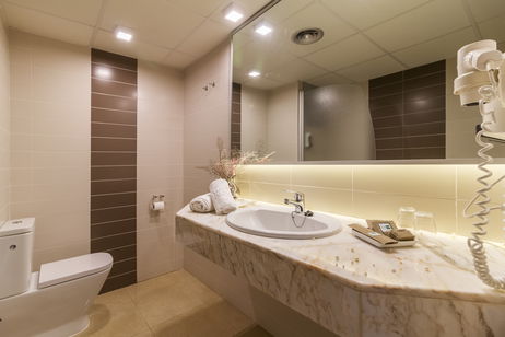 Aire acondicionado/calefacción. Camas de 90cmx190cm (cama de matrimonio bajo petición). TV 32'' con TDT y via satélite. Conexión wifi gratuita. Mini-nevera gratuita. Teléfono. Caja de seguridad (con suplemento). Baño completo con secador y set de amenities. Terraza exterior con mesa y sillas y vista a la piscina.