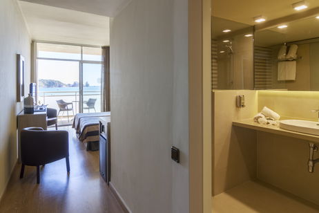 Climatisation/chauffage. Lits de 90cmx190cm (lit matrimoniale sur demande). TV 32'. Connexion wifi gratuite. Minifrigo gratuit. Telephone. Coffre-fort avec supplement. Bain complet avec sechoir cheveux. Terrasse exterieur avec table et chaises et vue sur la mer.